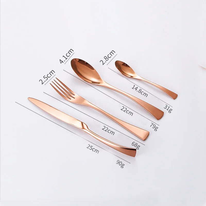 Size: knife-250*18mm,fork-220*25mm, dinner spoon-220*41mm,tea spoon-148*28mm