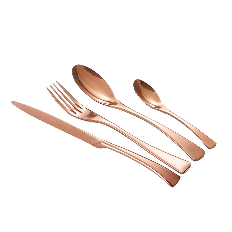 1. This flatware crafted from 410Stainless Steel, completed electroplated with titanium Gold and Rose Gold , rust proof, high hardness, Lead-free, Cadmium-free, Phthalate-free, BPA-free durable and eco-friendly.