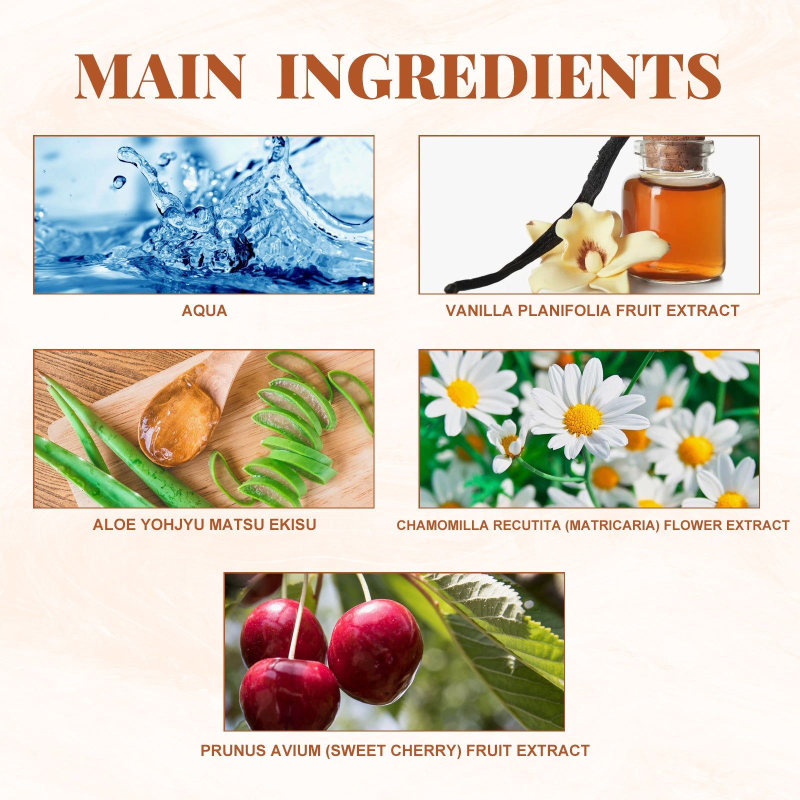 Our Amber Lover Fragrance Mist contains Vanilla Planifolia Fruit Extract, Aloe Yohjyu Matsu Ekisu, Chamomilla Recutita (Matricaria)Flower Extract. It can highlight your charm add elegance and confidence, make yourself stand out in social situations, attract more attention and appreciation, help create a romantic atmosphere, increase the attraction of emotional communication, make the date more memorable. Its use method is very simple: spray the perfume on the wrists, neck, behind the ears, or spray the perfume in the air and then mist, so that the perfume evenly distributed throughout the body, leaving a fragrant aroma. It can rejuvenate your body and mind and make it easy for you to fall into a deep sleep state.