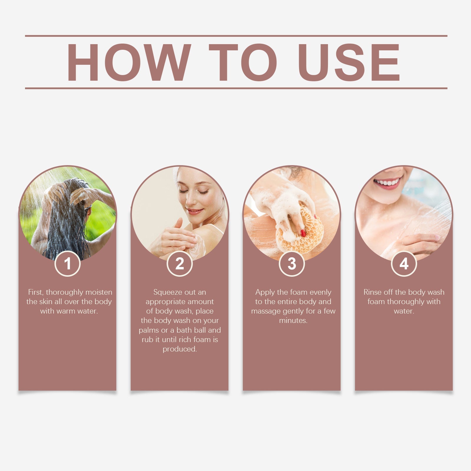 Our soothing body wash contains niacinamide, glycerin, cocamidopropyl betaine. It can provide a continuous sensitive moisturizing effect to keep the skin, it is gentle, skin moisturizing and non-irritating to use. The way to use it is very simple: first, thoroughly wet the foam, evenly squeeze out the right amount of body wash, put the body wash on the palm of the hand or on the bath ball, rub until it produces a rich foam. Rinse the body wash foam off thoroughly with water. Apply warm water all over your body and massage gently for a few minutes. And can be light texture, easy to apply, will not leave a sticky feeling, make the skin fresh and comfortable.